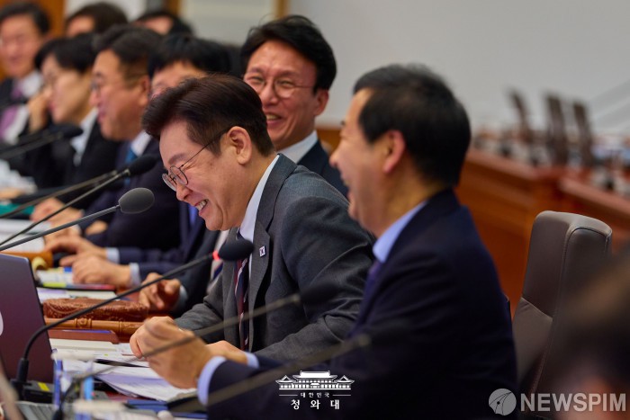 [서울=뉴스핌] 이재명 대통령이 3일 서울 종로구 청와대에서 열린 제4회 국무회의에서 미소를 짓고 있다. [사진=청와대] 2026.02.03 photo@newspim.com