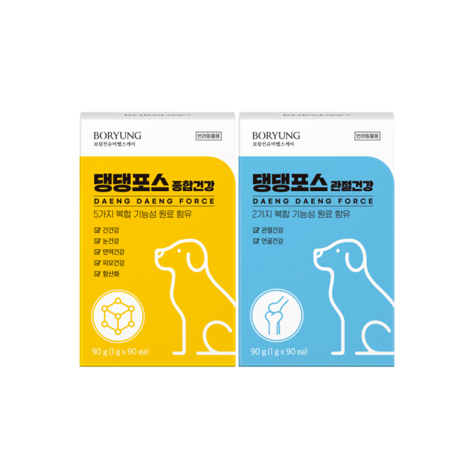 [서울=뉴스핌] 김신영 기자 = 보령컨슈머헬스케어는 반려견 전문 영양제 브랜드 '댕댕포스'를 론칭, 관련 제품 2종을 출시했다고 4일 밝혔다.
