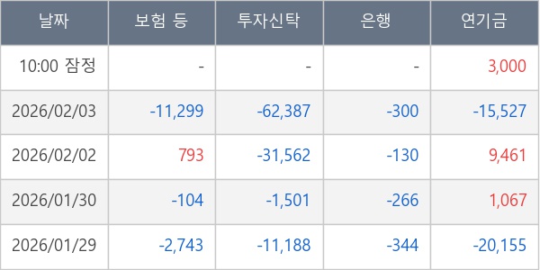 ※ 사모펀드 등 일부 기관의 순매매량은 표시되지 않음