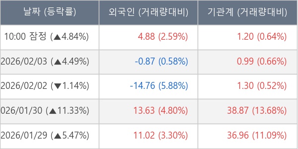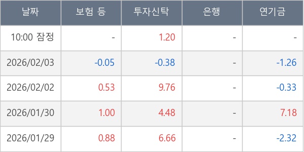 [표] 주요 기관별 순매매량 (단위 만주)