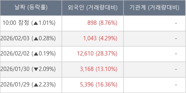 [표] 외국인ㆍ기관 순매매량 (단위 주)