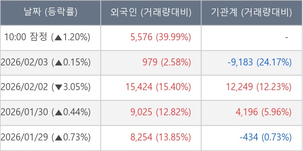 [표] 외국인ㆍ기관 순매매량 (단위 주)