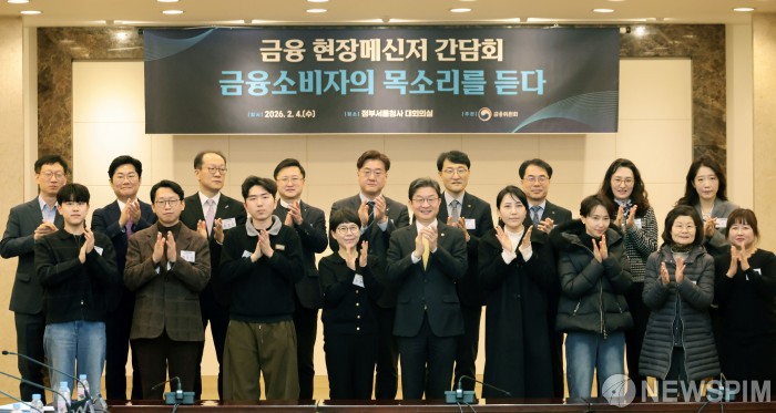 [서울=뉴스핌] 이길동 기자 = 이억원 금융위원장이 4일 서울 종로구 정부서울청사에서 열린 금융소비자 현장메신저 간담회에서 참석자들과 기념촬영을 하고 있다.2026.02.04 gdlee@newspim.com