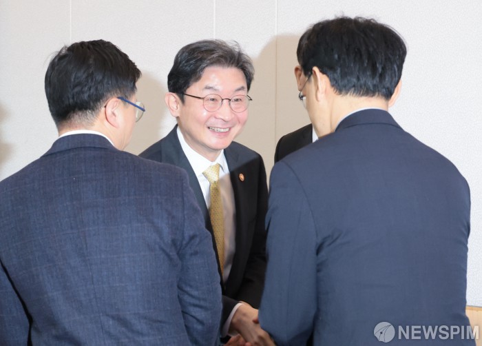 [서울=뉴스핌] 이길동 기자 = 이억원 금융위원장이 4일 서울 종로구 정부서울청사에서 열린 금융소비자 현장메신저 간담회에서 참석자들과 인사를 하고 있다.2026.02.04 gdlee@newspim.com