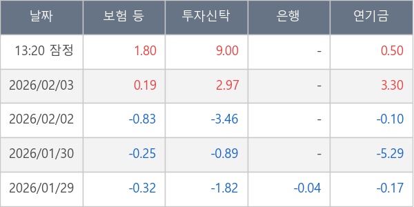 [표] 주요 기관별 순매매량 (단위 주)