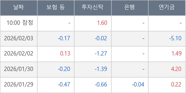 [표] 주요 기관별 순매매량 (단위 만주)