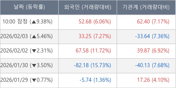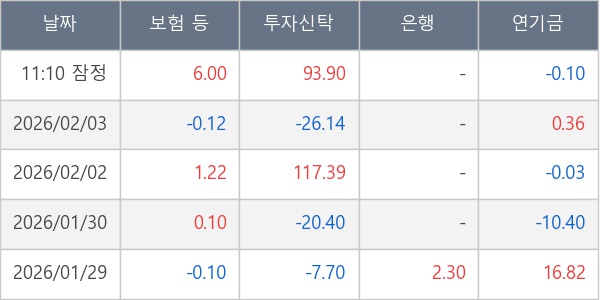 [표] 주요 기관별 순매매량 (단위 만주)