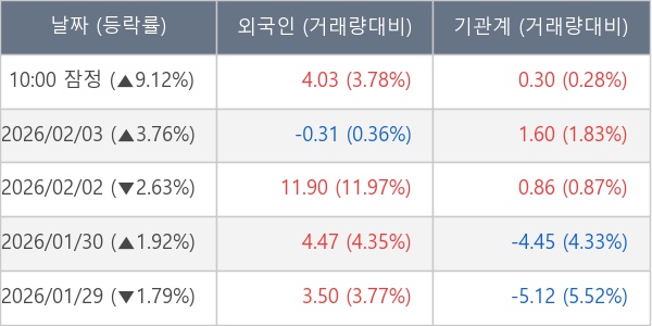 [서울=뉴스핌] 로보뉴스 = 04일 10시 15분 현재 이수스페셜티케미컬(457190)은 외국인과 기관이 각각 4.03 만 주, 0.30 만 주 순매수(잠정) 하면서 전일 대비 9.12% (현재가 117,300원) 상승하고 있다.