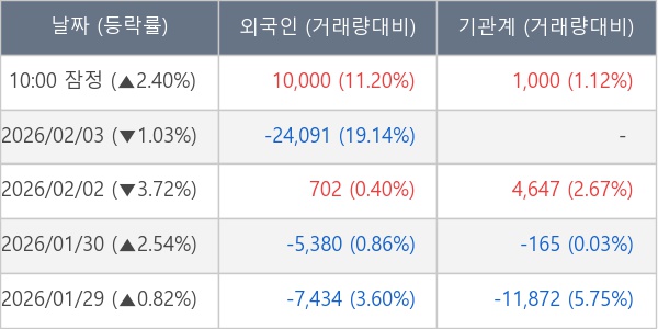 [표] 외국인ㆍ기관 순매매량 (단위 주)