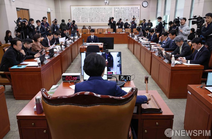 [서울=뉴스핌] 윤창빈 기자 = 추미애 국회 법제사법위원장이 4일 서울 여의도 국회에서 열린 법제사법위원회 전체회의에서 의사봉을 두드리고 있다. 2026.02.04 pangbin@newspim.com