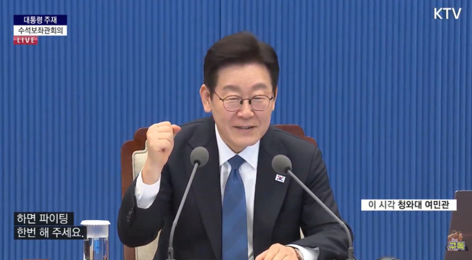 이 대통령은 이어 "우리 선수 모두의 선전을 국민 모두와 함께 응원한다"며 수석보좌관회의에 참석한 참모진에게 단체 응원을 제안했다.
