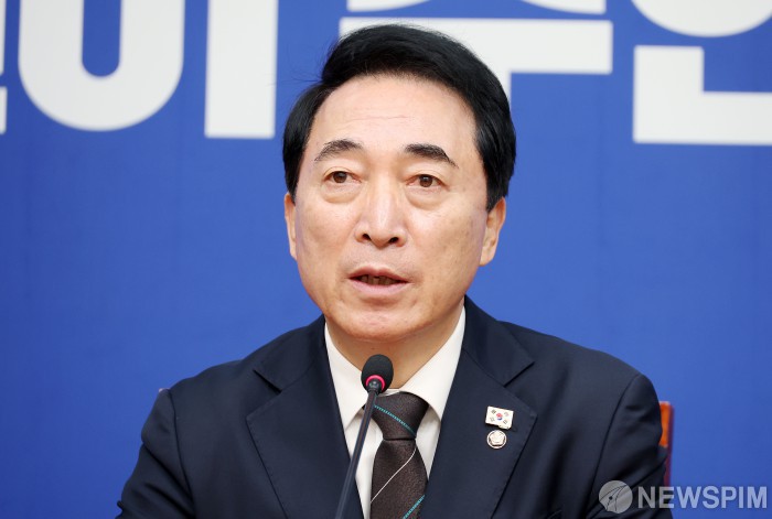 [서울=뉴스핌] 정일구 기자 = 박수현 더불어민주당 수석대변인이 8일 오전 서울 여의도 국회에서 열린 현안 관련 기자간담회에서 발언하고 있다. 2026.02.08 mironj19@newspim.com