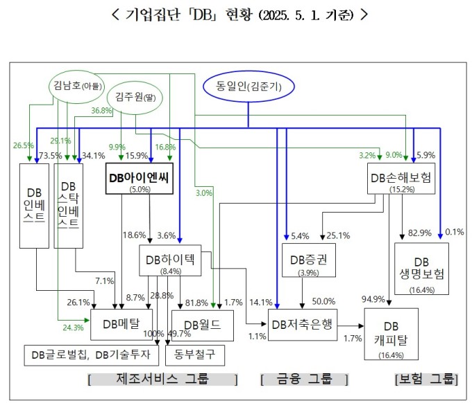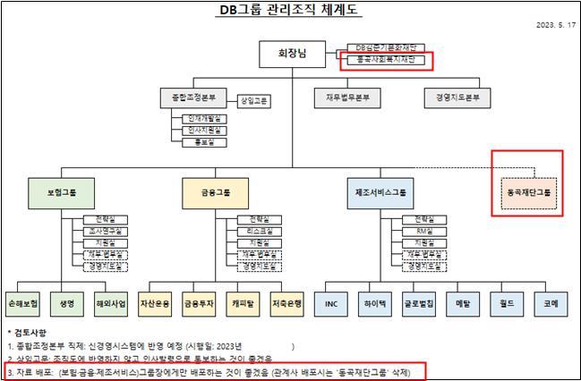 2023년 5월 기준 DB그룹 관리조직 체계도 [제공=공정거래위원회]