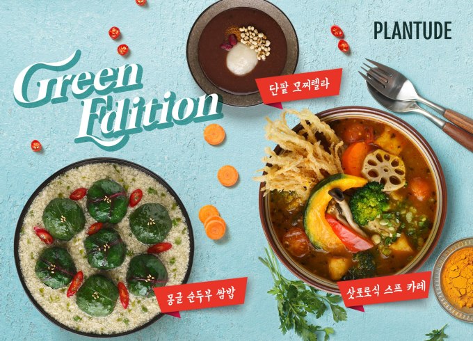 풀무원의 푸드서비스 전문기업 ㈜풀무원푸드앤컬처가 식물성 외식 브랜드 '플랜튜드(Plantude)'에서 '지속가능식생활 식단 경진대회' 수상작을 활용해 개발한 신메뉴 3종을 출시했다. [사진=풀무원 제공]