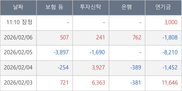 [표] 주요 기관별 순매매량 (단위 주)