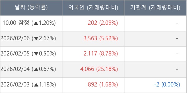 [표] 외국인ㆍ기관 순매매량 (단위 주)