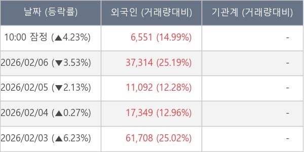[표] 외국인ㆍ기관 순매매량 (단위 주)
