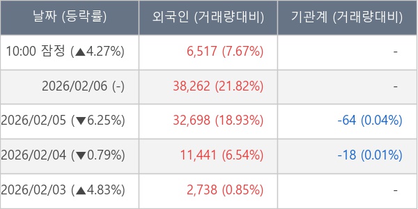 [표] 외국인ㆍ기관 순매매량 (단위 주)