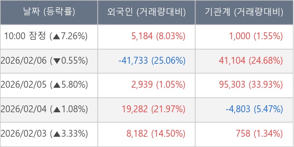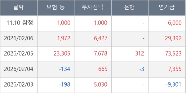 [표] 주요 기관별 순매매량 (단위 주)