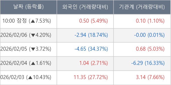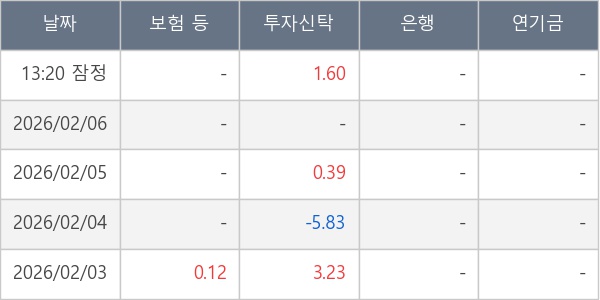 [표] 주요 기관별 순매매량 (단위 만주)