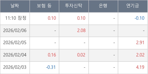 [표] 주요 기관별 순매매량 (단위 만주)