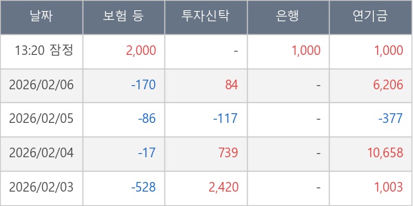 [표] 주요 기관별 순매매량 (단위 주)