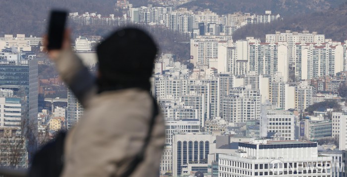 [서울=뉴스핌] 류기찬 기자 = 39세 이하 가구주 무주택 가구가 역대 최대 수준으로 늘었다. 지난 8일 국가통계포털(KOSIS)에 따르면 2024년 기준 전국 무주택 가구는 361만2321가구이며, 이 가운데 서울은 99만2856가구로 역시 최대치를 기록했다. 수도권 집중과 높은 집값, 제한적인 공급이 겹치며 청년층의 주택 진입 장벽이 높아지고 있다는 분석이다. 사진은 9일 오전 서울 남산에서 바라본 서울 시내 아파트 단지. 2026.02.09 ryuchan0925@newspim.com