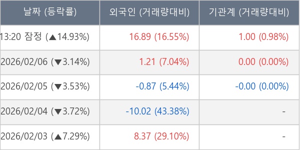 [서울=뉴스핌] 로보뉴스 = 09일 13시 30분 현재 코아시아(045970)는 외국인과 기관이 각각 16.89 만 주, 1.00 만 주 순매수(잠정) 하면서 전일 대비 14.93% (현재가 6,390원) 상승하고 있다.