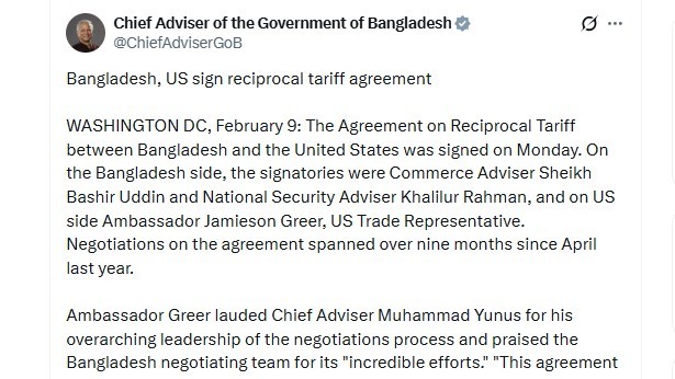 협정에 따라 미국은 방글라데시산 제품에 대한 상호 관세율을 19%로 조정하고, 대통령령 부속서에 명시된 일부 품목에 대해서는 0% 관세를 적용할 수 있도록 했다. 구체적으로 미국은 미국산 면화와 인조섬유 수출 물량에 연동해 방글라데시에서 생산된 일부 의류·섬유 제품에 무관세 혜택을 부여하는 메커니즘을 마련하기로 했다. 무함마드 유누스 방글라데시 과도정부 수석고문은 엑스(X)를 통해 "미국산 면화와 합성섬유를 사용하는 방글라데시산 의류가 미국 시장에서 무관세 혜택을 받도록 미국이 약속했다"며, "우리 의류 수출 구조를 바꾸는 역사적 계기"라고 평가했다.