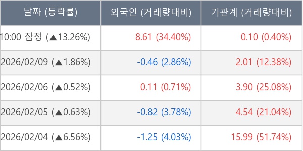 [표] 주요 기관별 순매매량 (단위 만주)