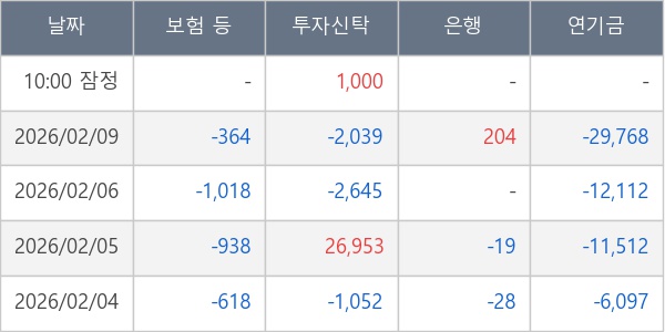 [표] 주요 기관별 순매매량 (단위 주)