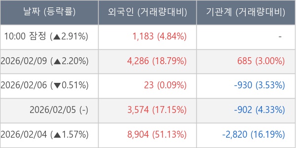[표] 외국인ㆍ기관 순매매량 (단위 주)