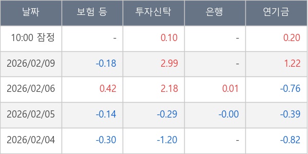 [표] 주요 기관별 순매매량 (단위 만주)