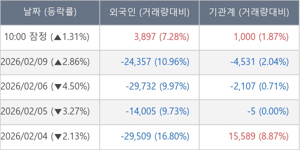 [표] 주요 기관별 순매매량 (단위 주)