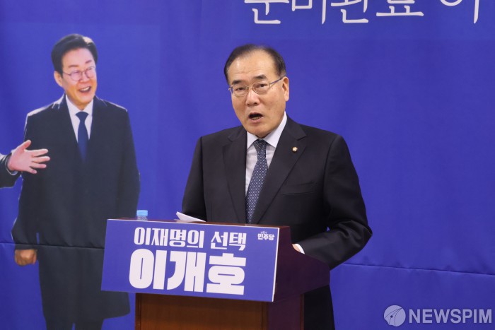 [광주=뉴스핌] 박진형 기자 = 이개호 더불어민주당 의원(전남 담양·함평·영광·장성)이 10일 광주시의회 브리핑룸에서 기자회견을 열고 '전남광주특별시장' 출마 선언을 하고 있다. 2026.02.10 bless4ya@newspim.com
