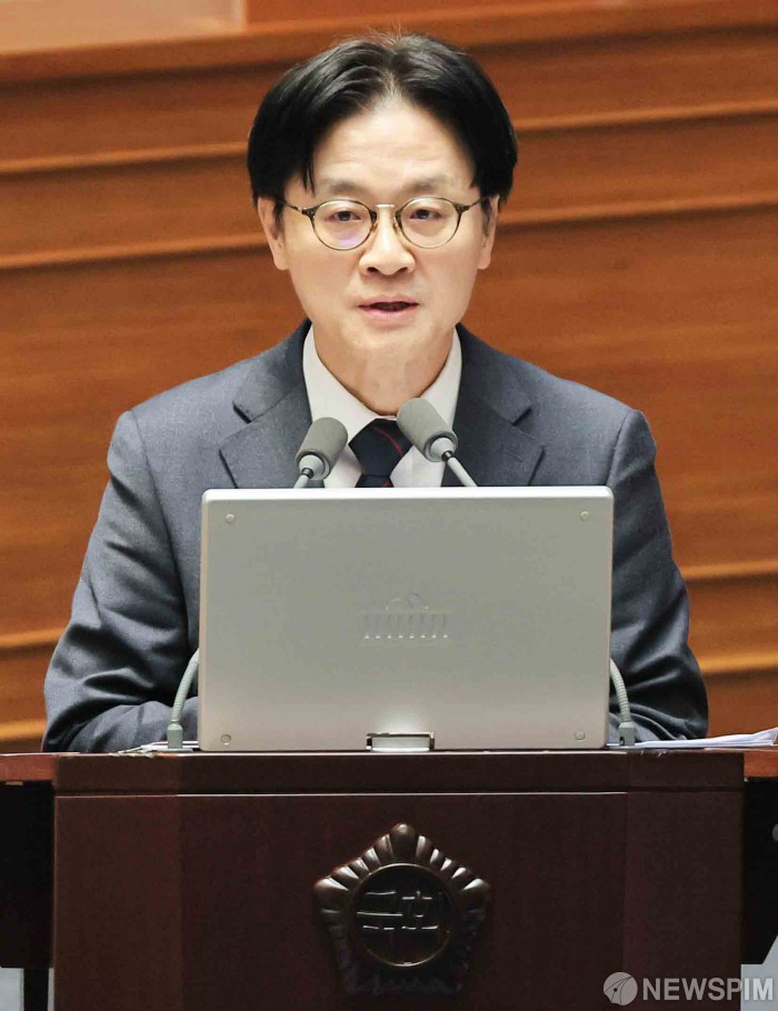 [서울=뉴스핌] 윤창빈 기자 = 김정관 산업통상부 장관이 10일 오후 서울 여의도 국회에서 열린 경제에 관한 대정부질문에서 답변을 하고 있다. 2026.02.10 pangbin@newspim.com