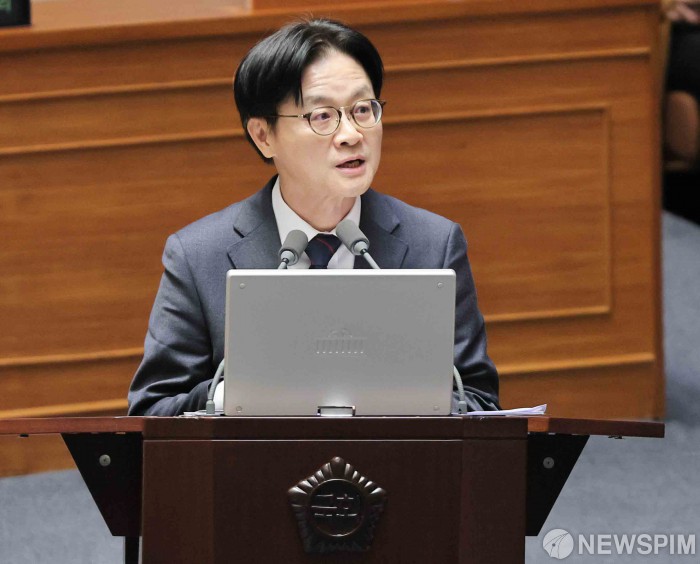 [서울=뉴스핌] 윤창빈 기자 = 김정관 산업통상부 장관이 10일 오후 서울 여의도 국회에서 열린 경제에 관한 대정부질문에서 답변을 하고 있다. 2026.02.10 pangbin@newspim.com