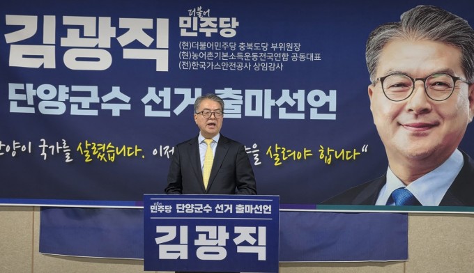 [단양=뉴스핌] 백운학 기자 = 김광직 더불어민주당 충북도당 부위원장이 "멈춰 서 있는 단양경제, 소멸하는 인구를 가진 단양의 구조를 근본부터 바꾸겠다"며 오는 지방선거에서 단양군수 출마를 공식 선언했다.