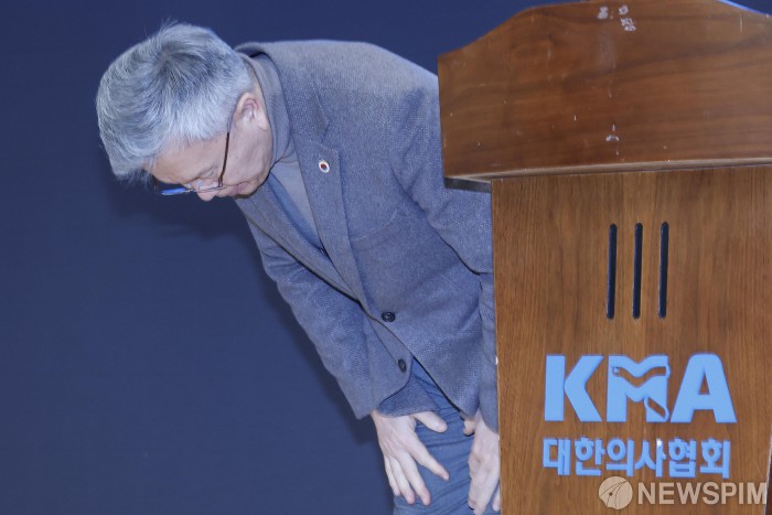 [서울=뉴스핌] 류기찬 기자 = 김택우 대한의사협회장이 10일 오후 서울 용산구 대한의사협회에서 열린 긴급 브리핑에서 인사를 하고 있다. 2026.02.10 ryuchan0925@newspim.com