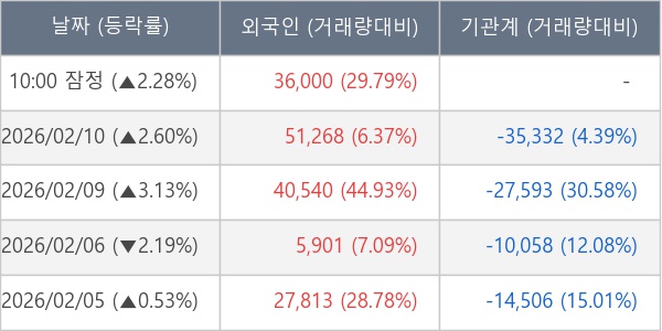 [표] 외국인ㆍ기관 순매매량 (단위 주)
