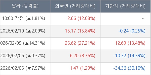 [표] 외국인ㆍ기관 순매매량 (단위 만주)