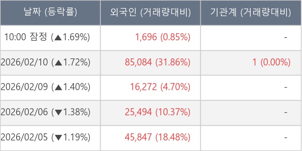 [표] 외국인ㆍ기관 순매매량 (단위 주)
