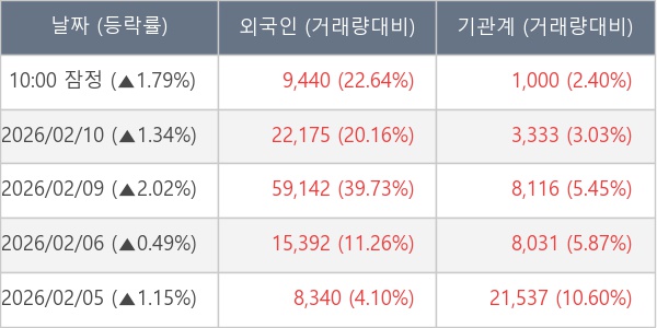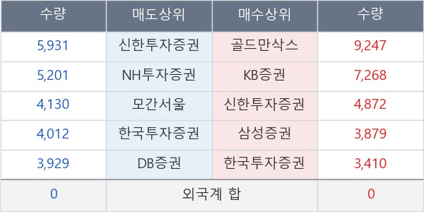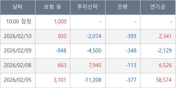 [표] 주요 기관별 순매매량 (단위 주)