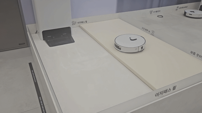 주행 성능도 개선됐다. 기존에는 넘지 못하던 두꺼운 매트나 문턱을 무리 없이 올라섰다. 승월(문턱·매트 등을 넘어가는 주행 능력) 높이가 45㎜까지 확대된 덕분이다. 5개의 휠 구조로 균형을 잡아 주행이 안정적이고, 매트 위에서 헛도는 모습도 거의 보이지 않았다. 어린 자녀가 있는 가정에서 매트 청소가 중요한 이유를 고려한 설계라는 설명이 체감됐다.