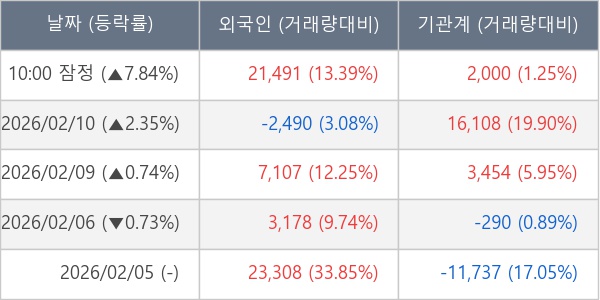 [표] 주요 기관별 순매매량 (단위 주)