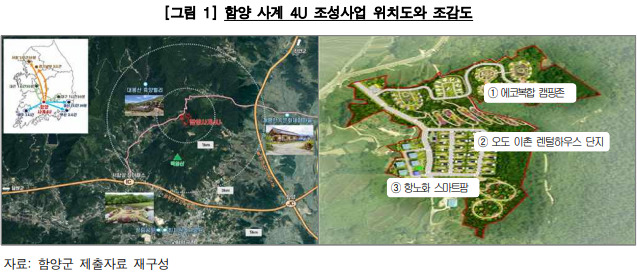[서울=뉴스핌] 김현구 기자 = 경상남도 함양군이 '함양 사계포유(4U) 조성사업'을 추진하면서 지방재정 투자심사 절차를 이행하지 않은 채 사업부지를 매입하고, 사업과 직접 관련이 없는 지방 정원 조성사업 부지까지 사들인 사실이 감사원 감사에서 확인됐다.