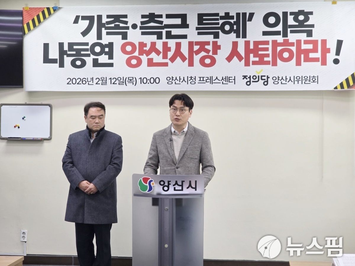 [양산=뉴스핌] 남성봉 기자=정의당 양산시위원회가 나동연 양산시장 며느리와 측근들의 토지 관련 의혹보도와 관련 해명이나 문제를 지적하지 않는 나동연 시장과 양산시의회를 질타했다.