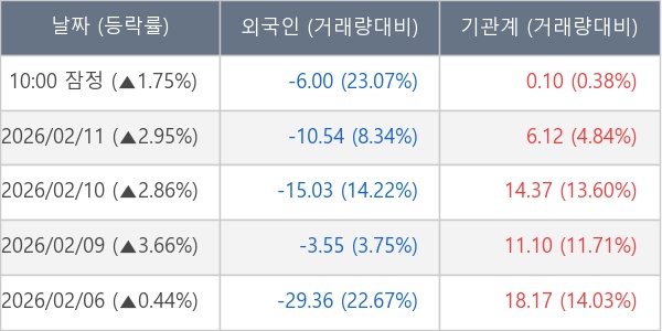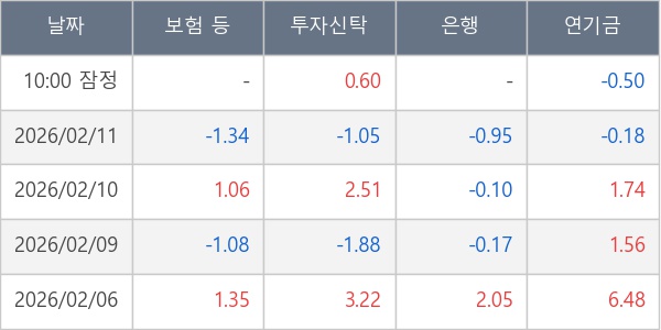 [표] 주요 기관별 순매매량 (단위 만주)