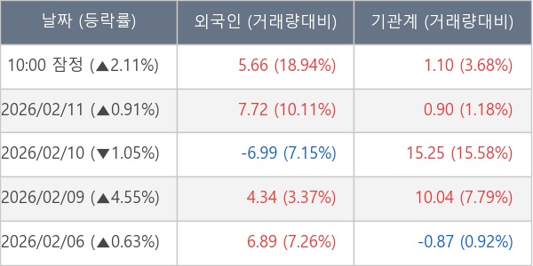 [표] 외국인ㆍ기관 순매매량 (단위 만주)