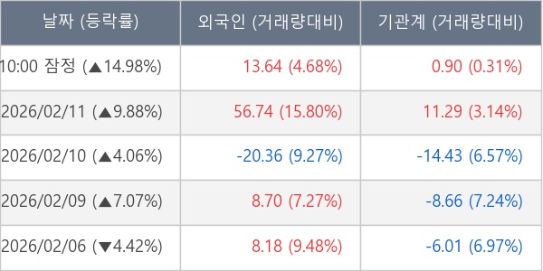 [서울=뉴스핌] 로보뉴스 = 12일 10시 15분 현재 아이엘(307180)은 외국인과 기관이 각각 13.64 만 주, 0.90 만 주 순매수(잠정) 하면서 전일 대비 14.98% (현재가 5,180원) 상승하고 있다.